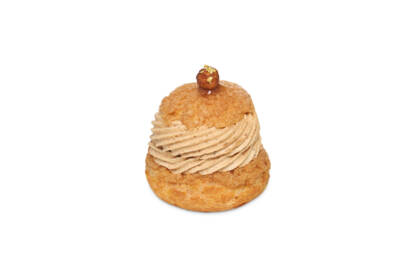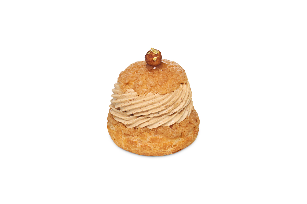 Pâte à choux aux noisettes caramélisées, cœur praliné noisette, crème mousseline à la noisette